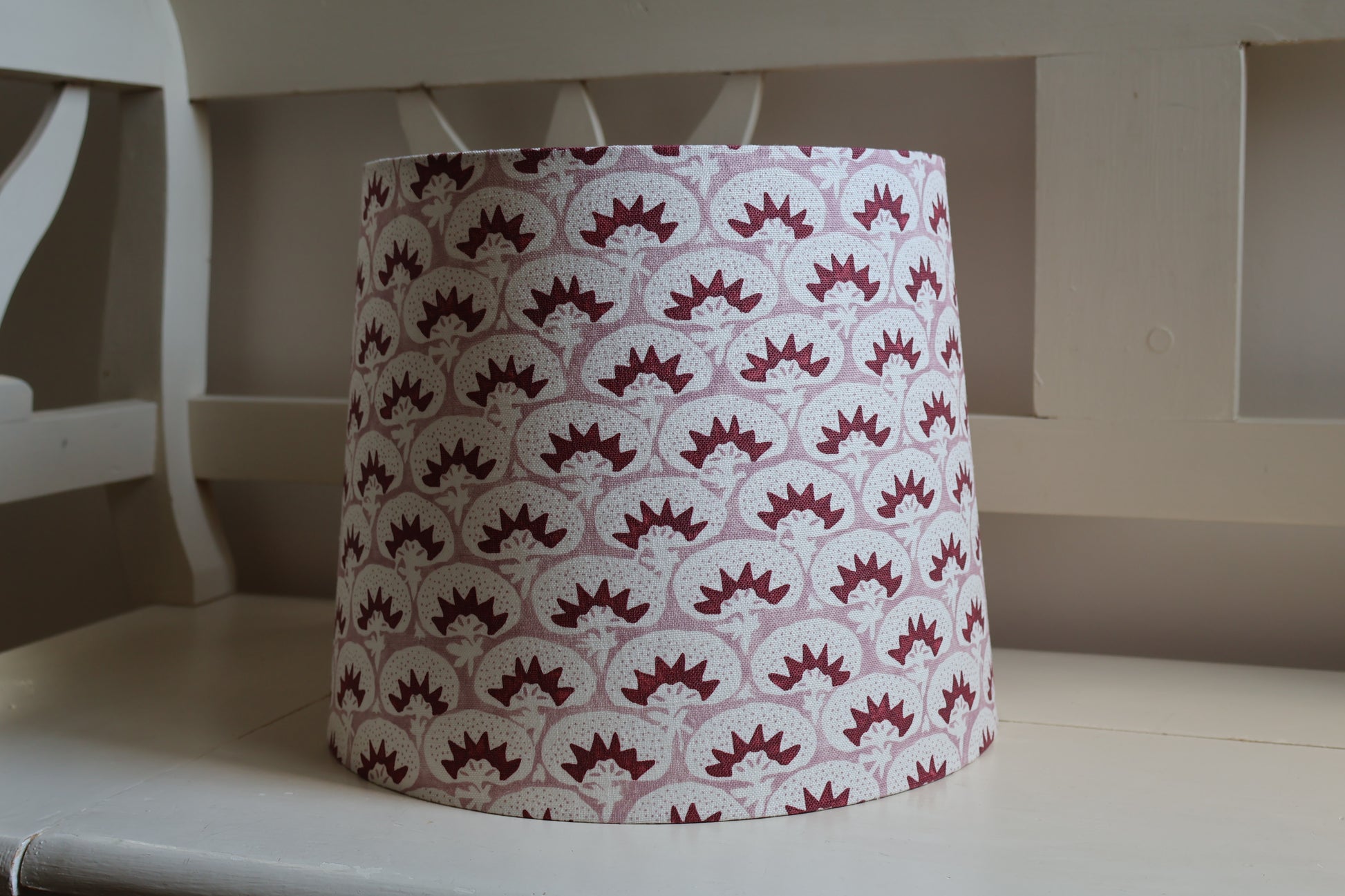Add a bold yet elegant touch to your space with this handcrafted linen lampshade, featuring the striking Laguna print in soft pink and deep berry tones. The classic empire shape and 30cm diameter make it ideal for larger table lamps, floor lamps, or ceiling pendants. Its gently flared silhouette adds timeless charm while softly diffusing light to create a warm, welcoming glow.